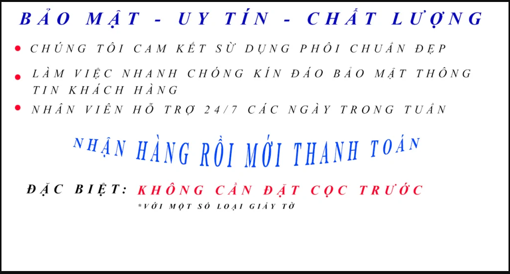Bước 3: Khác.h cầ.n kiể.m tr.a k.ỹ thông tin: Là.m xong chúng tôi sẽ c.hụp ả.nh m.ặt trư.ớc và m.ặt s.au cho khách. Nếu tà.i liệ.u chúng tôi l.àm có vấn đề như in s.ai chữ, i.n s.ai, kh.ông đ.ạt yêu cầu… Quý khách hàng có thể liên hệ với chúng tôi để s.ửa lại theo ý mu.ốn.